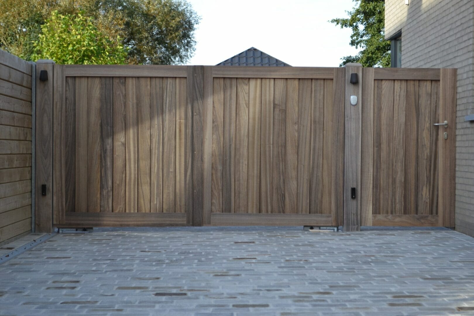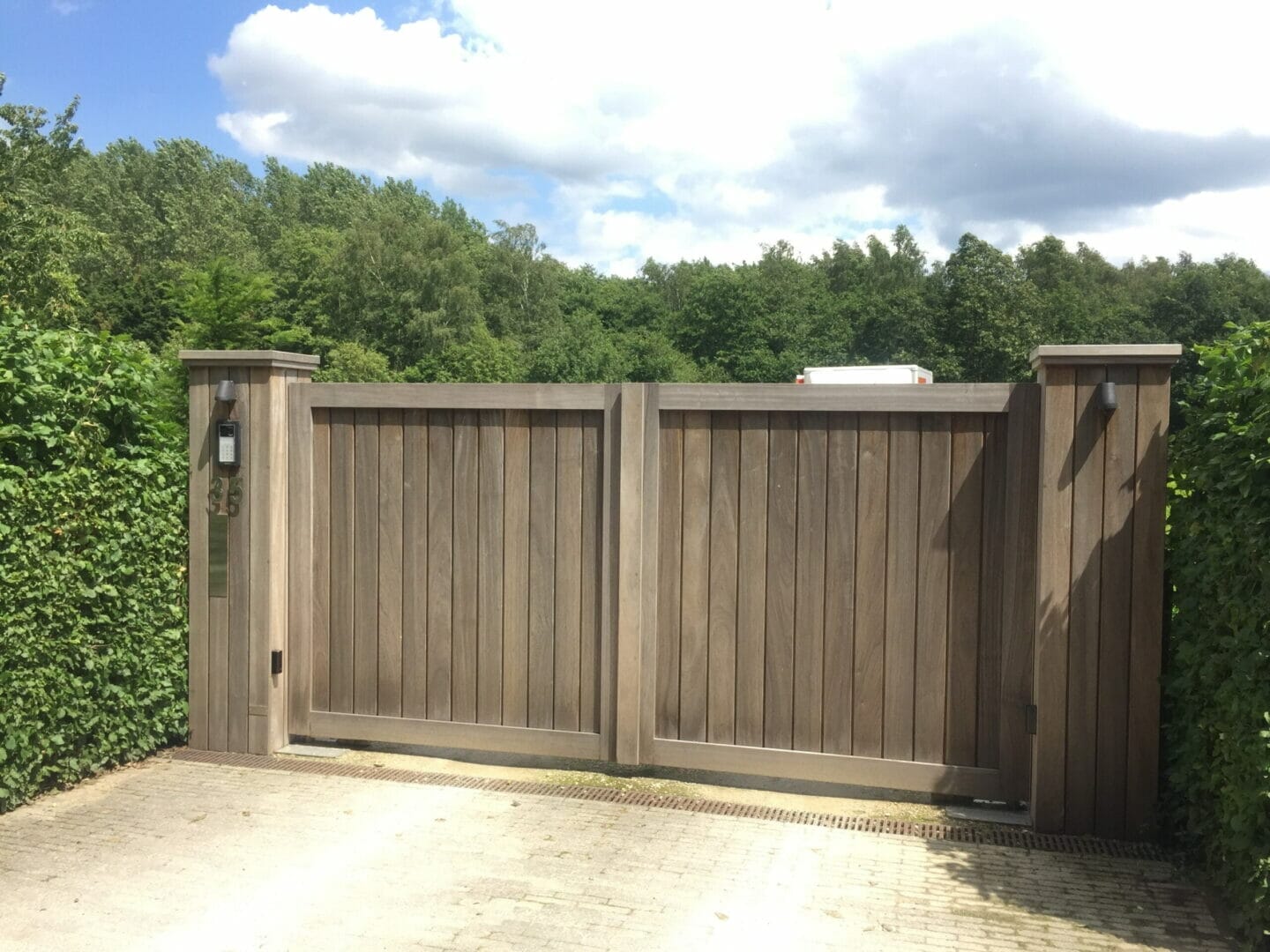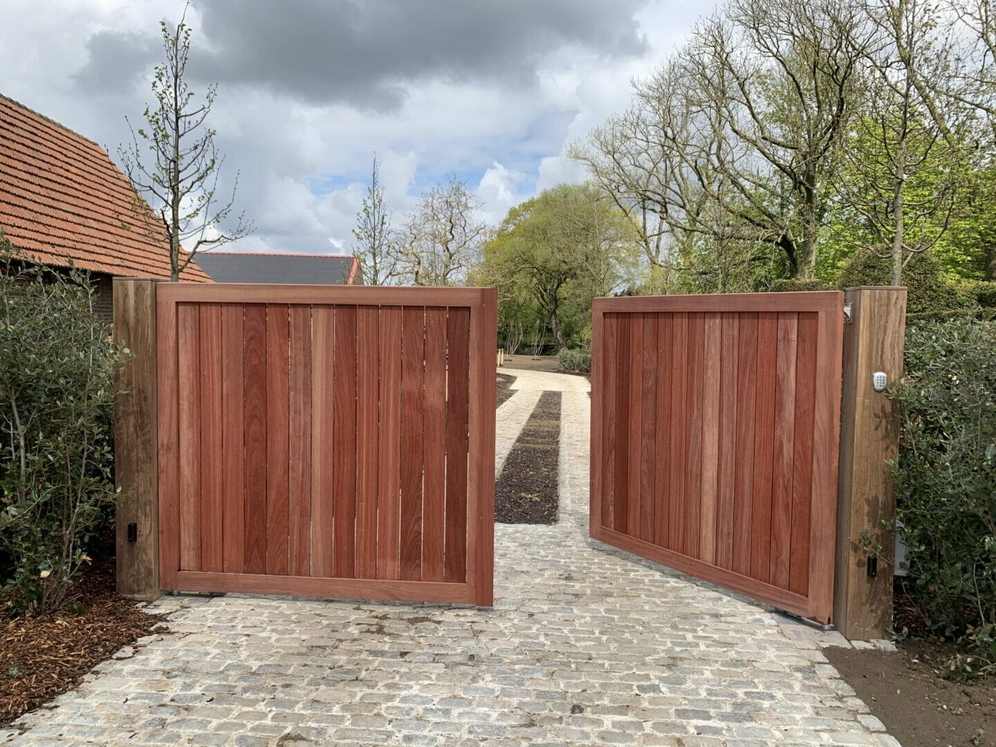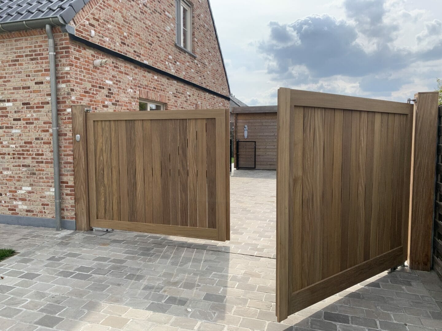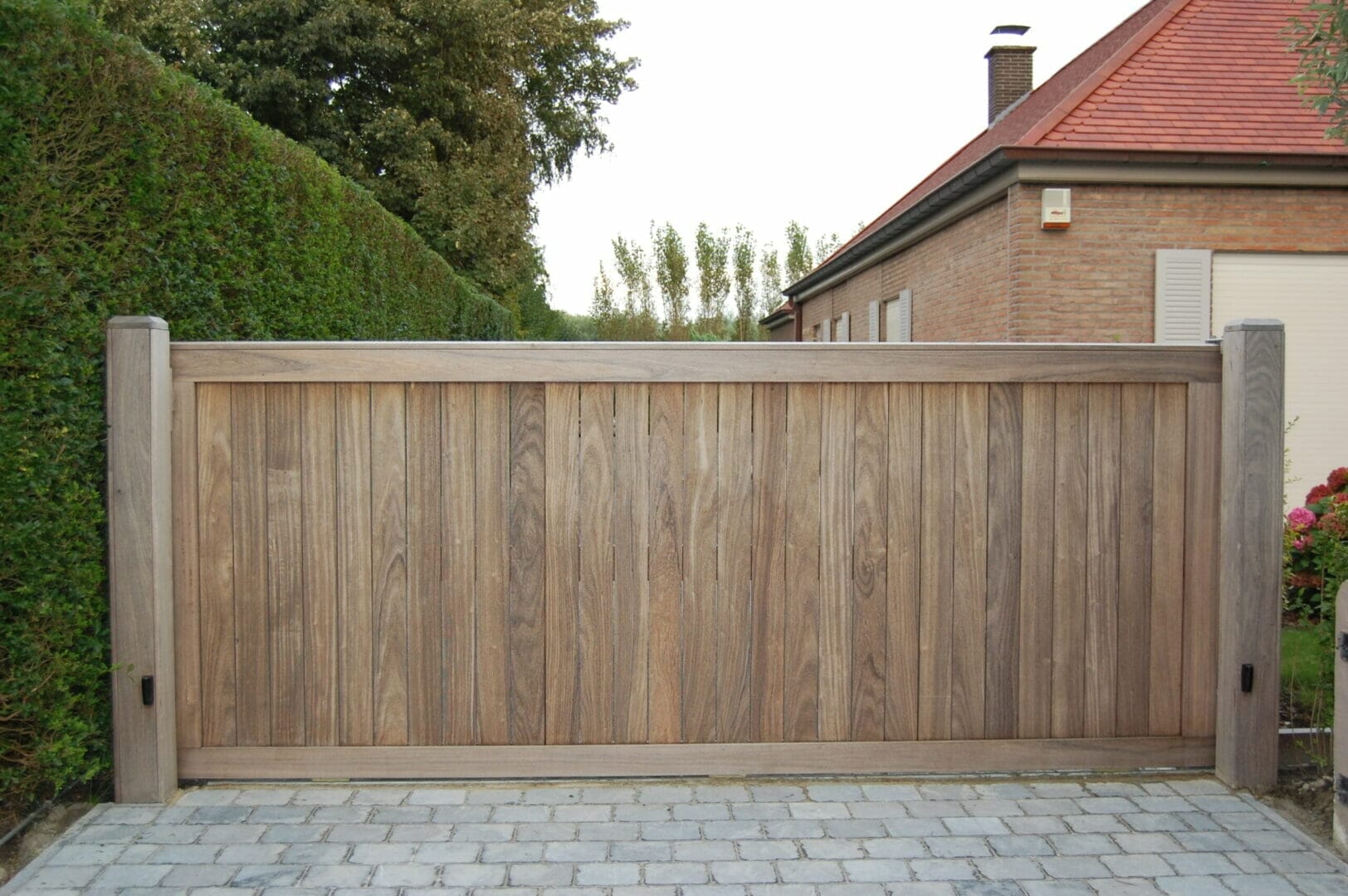 Indien je graag een iets luchtigere look wil, kan er ook gekozen worden om wat speling te laten tussen de beplanking. Hierdoor krijgt de poort een minder massieve look, maar behoud je toch de karaktervolle stijl. Kiezen voor kleine speling tussen de beplanking is ook intressant bij grotere poorten omdat de wind er dan doorheen kan en de poort niet zoveel druk ondervindt bij veel wind.