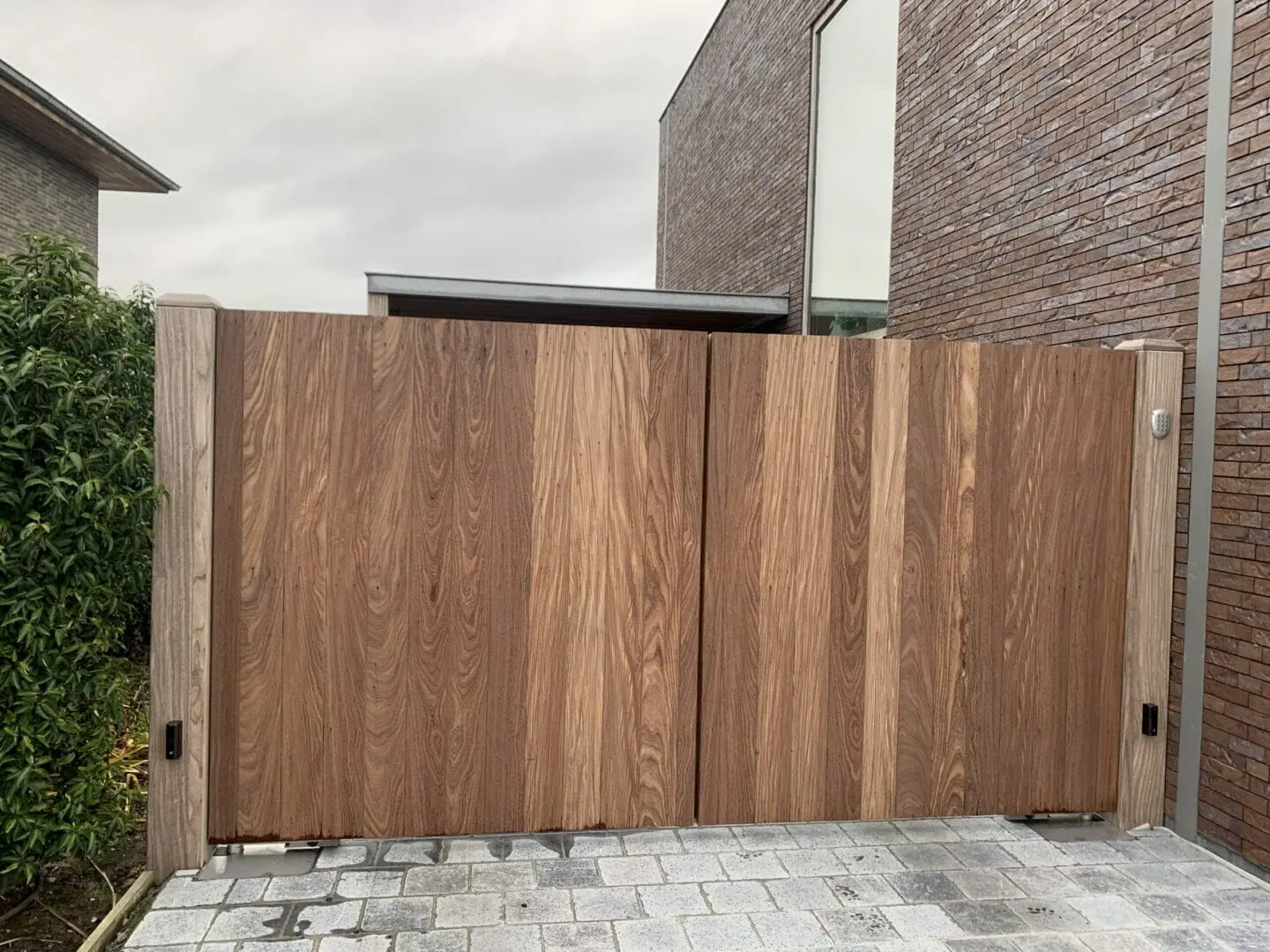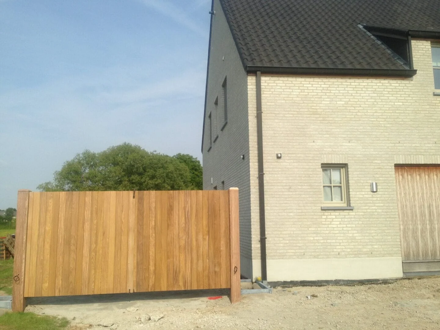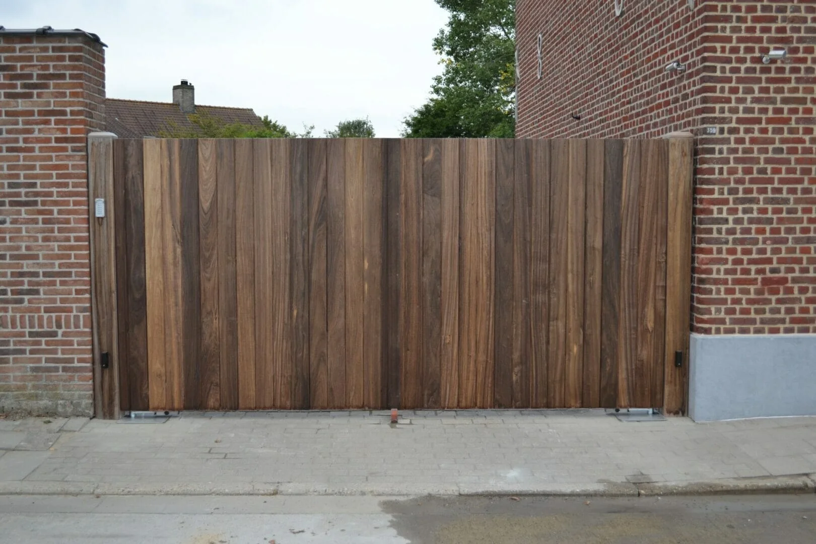 Indien je graag een iets luchtigere look wil, kan er ook gekozen worden om wat speling tussen de beplanking te laten. Hierdoor lijkt de poort minder zwaar. Speling tussen de beplanking is ook interessant bij grotere poorten omdat de wind er dan doorheen kan en de poort niet zoveel druk ondervindt bij weel wind.