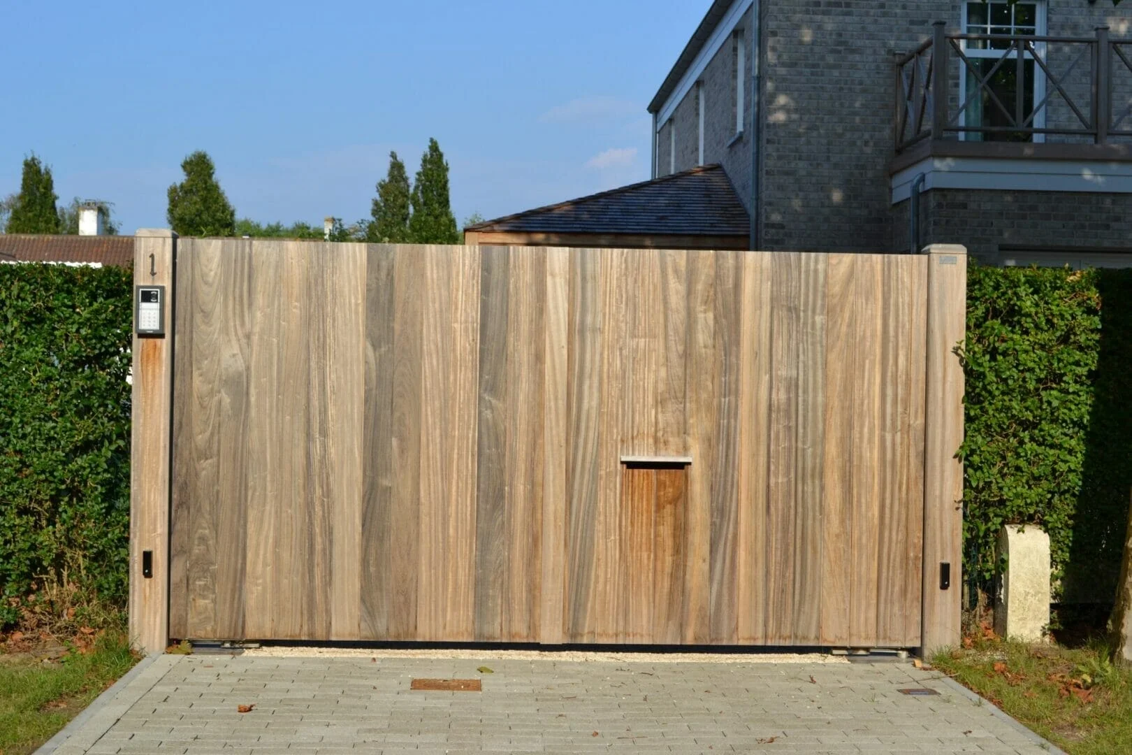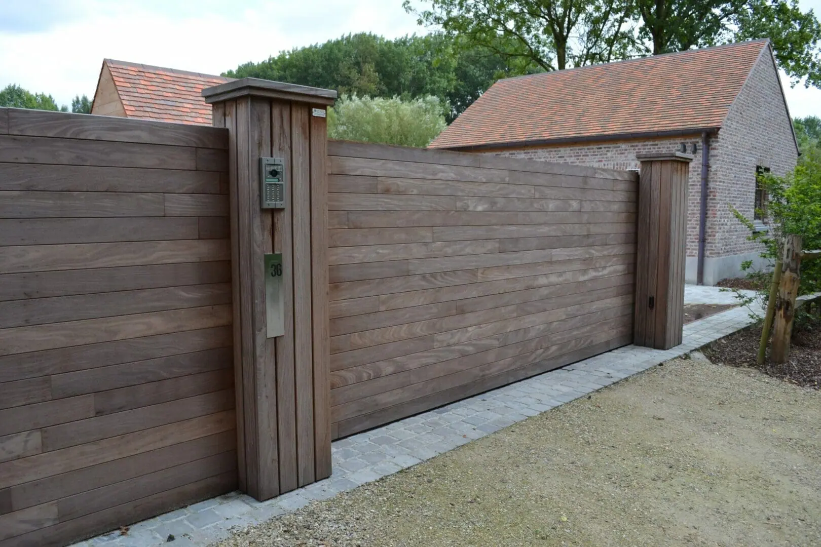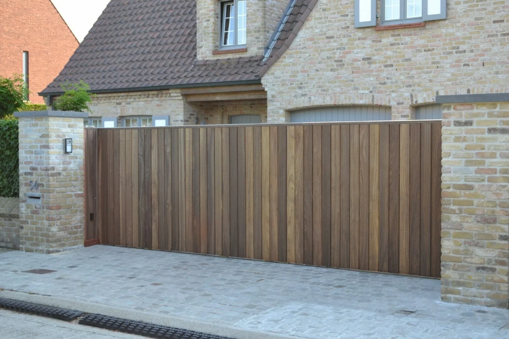 Indien je graag een iets luchtigere look wil, kan er ook gekozen worden om wat speling tussen de beplanking te laten. Hierdoor lijkt de poort minder zwaar. Speling tussen de beplanking is ook interessant bij grotere poorten omdat de wind er dan doorheen kan en de poort niet zoveel druk ondervindt bij weel wind.
